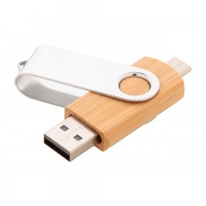 Artikel-Nr: AND897091_8GBDreh OTG USB-Stick im Bambusgehäuse mit Metallbügel, 4/8/16/32 GB Speicher, USB und USB-C Steckern, USB 2.0. Einzeln in Kraftpapierbox.