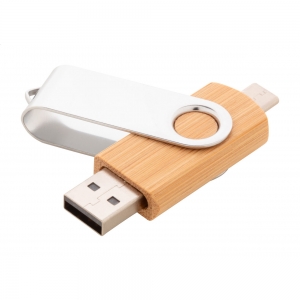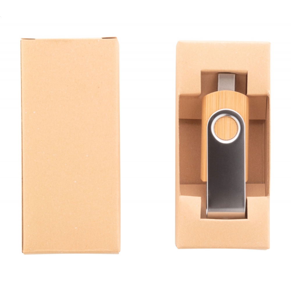 Artikel-Nr: AND897091_8GBDreh OTG USB-Stick im Bambusgehäuse mit Metallbügel, 4/8/16/32 GB Speicher, USB und USB-C Steckern, USB 2.0. Einzeln in Kraftpapierbox.