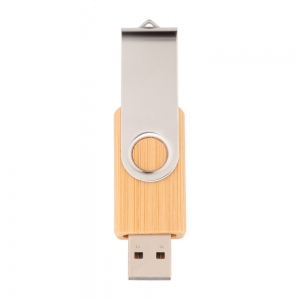 Artikel-Nr: AND897091_8GBDreh OTG USB-Stick im Bambusgehäuse mit Metallbügel, 4/8/16/32 GB Speicher, USB und USB-C Steckern, USB 2.0. Einzeln in Kraftpapierbox.