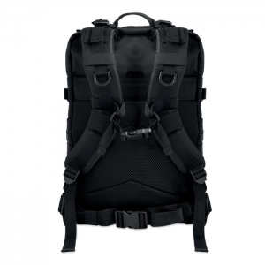 Artikel-Nr: OCBMO2970-03Outdoor-Rucksack aus 600D RPET. Gepolstertes Laptopfach, Innenfächer, Front-Reißverschlusstaschen, gepolsterte Mesh-Schultergurte und Rückenpartie, Hüftgurt und elastische Halterungen. Volumen: 50L.