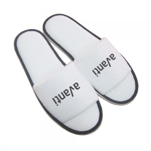 Artikel-Nr: PRM201701_15Paar Badeslipper, offen, Einheitsgrösse, in weiß mit farbiger Biese, Obermaterial Velours und mit Anti Rutsch Sohle