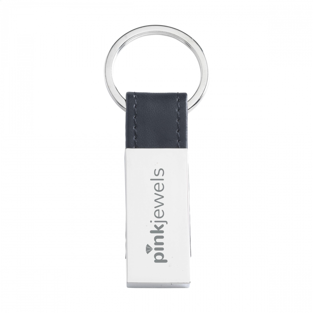 Artikel-Nr: CLP260801-001Schlüsselanhänger aus Metall in Kombination mit schwarzem PU-Lederlook-Material. An stabilem Schlüsselanhänger.