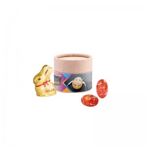 Artikel-Nr: PUC1190.00024Papierdose Eco Mini, rundum mit Papieretikett, individuell bedruckt. Mit Originalitätsverschluss. Inhalt: 1 Lindt Schokoladen Osterhase aus feiner Alpenmilchschokolade, 10 g und 2 LINDOR Mini Ostereier aus Vollmilchschokolade à 4,6 g, gesamt 19,20 g. Saisonartikel - solange der Vorrat reicht!