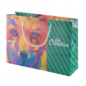 Artikel-Nr: AND718103Individuelle Papier-Einkaufstasche mit Henkeln aus PP. Mit Vollfarbdruck. Mindestmenge: 500 Stk.