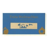 Wahlweise in rot, grün oder blau, goldfarbener Druck, mit Lesezeichen, aus Furnier, wahlweise mit Tannen, Sterne, Bethlehem oder Pinguine gelasert