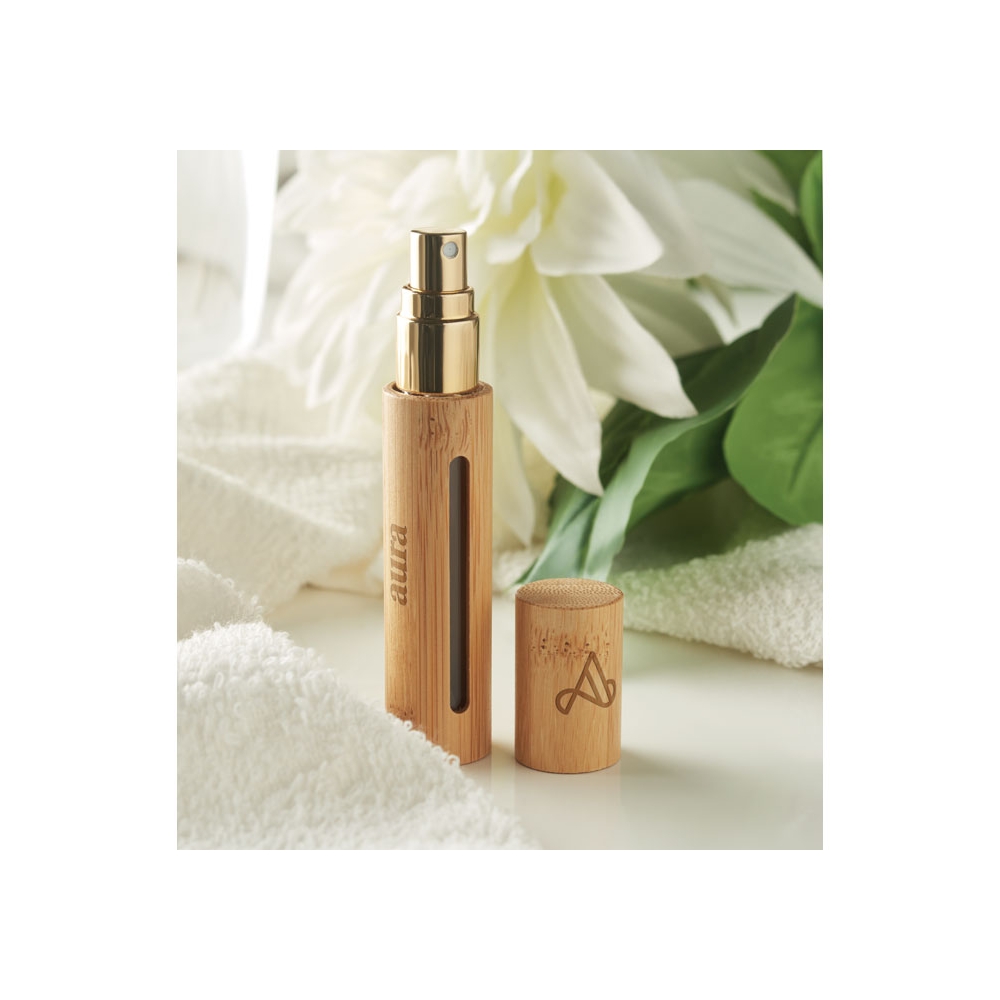 Artikel-Nr: OCBMO6697-40Nachfüllbarer kleiner Parfümzerstäuber im Bambusgehäuse. Füllmenge: 10 ml. Bambus ist ein natürliches Produkt, es kann daher zu leichten Abweichungen in Farbe, Dekor und Maßen kommen.