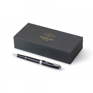 Artikel-Nr: GIV9399001127Parker Rollerball Sonnet Schaft und Kappe aus Edelstahl, akzentuiert durch Clip und Zierleiste in Chromoptik. Tintenfarbe: schwarz. Verpackt in einer Geschenkbox.