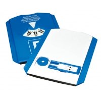 Artikel-Nr: D533AL0212Euro-Parkscheibe aus Kunststoff, Eiskratzerfunktion mit Gummilippe, Vorderseite 4-sprachig deutsch, französisch, niederländisch, englisch, 1 integrierter blauer Chip (1 €-Größe) und ein integrierter Reifenprofilmesser, ca. 11,8 x 15,5 cm, 200 Stück im Karton, UV 50 Stück