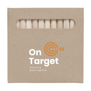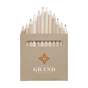 Artikel-Nr: CLP261419-94512 hölzerne, unlackierte, angespitzte Buntstifte in einem Karton aus Recyclepapier.