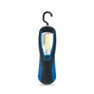 Artikel-Nr: PST94739-104Taschenlampe aus ABS mit LED COB Light, Haken und Magnet zur Befestigung z. B. an einem Gerüst. Enthält 3 AA Batterien. 61 x 200 x 35 mm