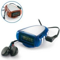 Pedometer mit FM Radio. Zeigt an: Schrittanzahl, Meilen oder Kilometer, Kalorien. Inkl. 2 Knopfzellen. Abmessung: 6x4,7x2,4 cm. Druckgröße: 15x30 mm. Erhältlich in den abgebildeten Farben.