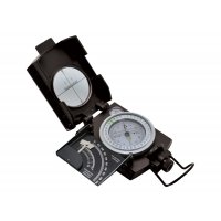 Artikel-Nr: 688PLR207Gehäuse aus schwarzem Metall mit Einsatz aus Plexiglas im Deckel, in welchem eine Messlinie erscheint. Das vergrössernde Prisma macht ein einfaches, sehr präzises Ablesen der Richtung möglich, während man etwas in der Landschaft anvisiert. Ziffernblatt mit Leuchtpunkt (phosphoreszierend). Lupe, Gradmesser. Klinometer. Wird geliefert mit einem robusten Lederetui in hellgrau, mit MetallVerschluss.