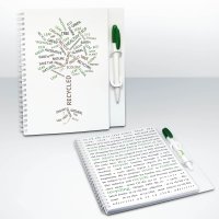Das A5 Notizbuch aus Recycling-Kunststoff und Recycling-Papier mit recyceltem Kugelschreiber.