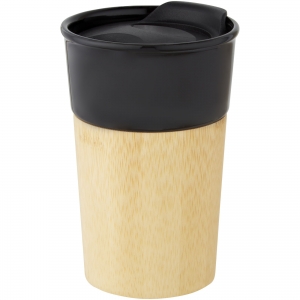 Artikel-Nr: CPO10064590Eleganter Porzellanbecher mit einer Außenseite aus Bio Bambus, was ein natürliches Aussehen und ein angenehmes Griffgefühl bietet. Der Pereira Becher verfügt über einen auslaufsicheren Schiebedeckel zum Aufstecken und ist BPA-frei. Das Fassungsvermögen beträgt 320 ml. Handwäsche empfohlen. Verpackt in einer Geschenkbox aus Recyclingkarton.