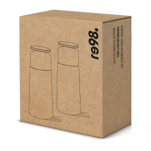 Artikel-Nr: RFS52646-BNDie Salz- und Pfeffermühlen RE98-MILLMASTER sind nun im praktischen 2er-Set erhältlich. Gefertigt aus hochwertigem Aluminium und Akazienholz, vereinen sie Stil mit Nützlichkeit. Durch Drehen an der Aluminiumscheibe lässt sich der Mahlgrad von grob bis fein einstellen. Ein Keramikmahlwerk gewährleistet hervorragende Mahlergebnisse. Mit ihren großen Logoflächen sind die Mühlen optimale Markenbotschafter und bieten verschiedene Werbemöglichkeiten. Der Holzkorpus ist mit Tampondruck oder CO2-Lasergravur veredelbar, während die Aluminiumscheibe per Lasergravur veredelt werden kann. Hinweise: Holz ist ein natürlich wachsender Rohstoff. Unterschiedlich starke Maserungen und Farbtönungen des Holzes liegen in der Natur des Materials. RE98-MILLMASTER DUO ist speziell für das Mahlen von Salz und Pfeffer konzipiert.