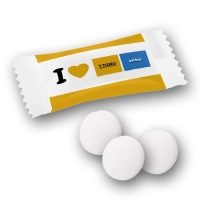 Artikel-Nr: W965S0066Leckere Minze - einzeln verpackt. Eine begehrte kleine Süßigkeit auf Messen und Events, aber auch auf dem Verkaufstresen und an der Kasse. Die optimale Logogröße für diesen Artikel ist 30 x 20 mm.
