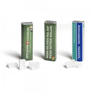 Artikel-Nr: MGN03004-000412 Pfefferminztabletten zuckerhaltig, verpackt in individuell bedruckter Papierbanderole.