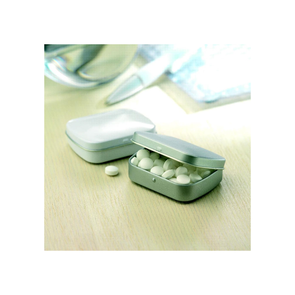 Artikel-Nr: OCBKC6642-16Praktische Dose mit Pfefferminz. Inhalt: ca. 25 g.