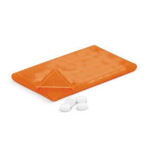Rechteckiger Pfefferminzspender mit ca. 7g zuckerfreien Pfefferminz.