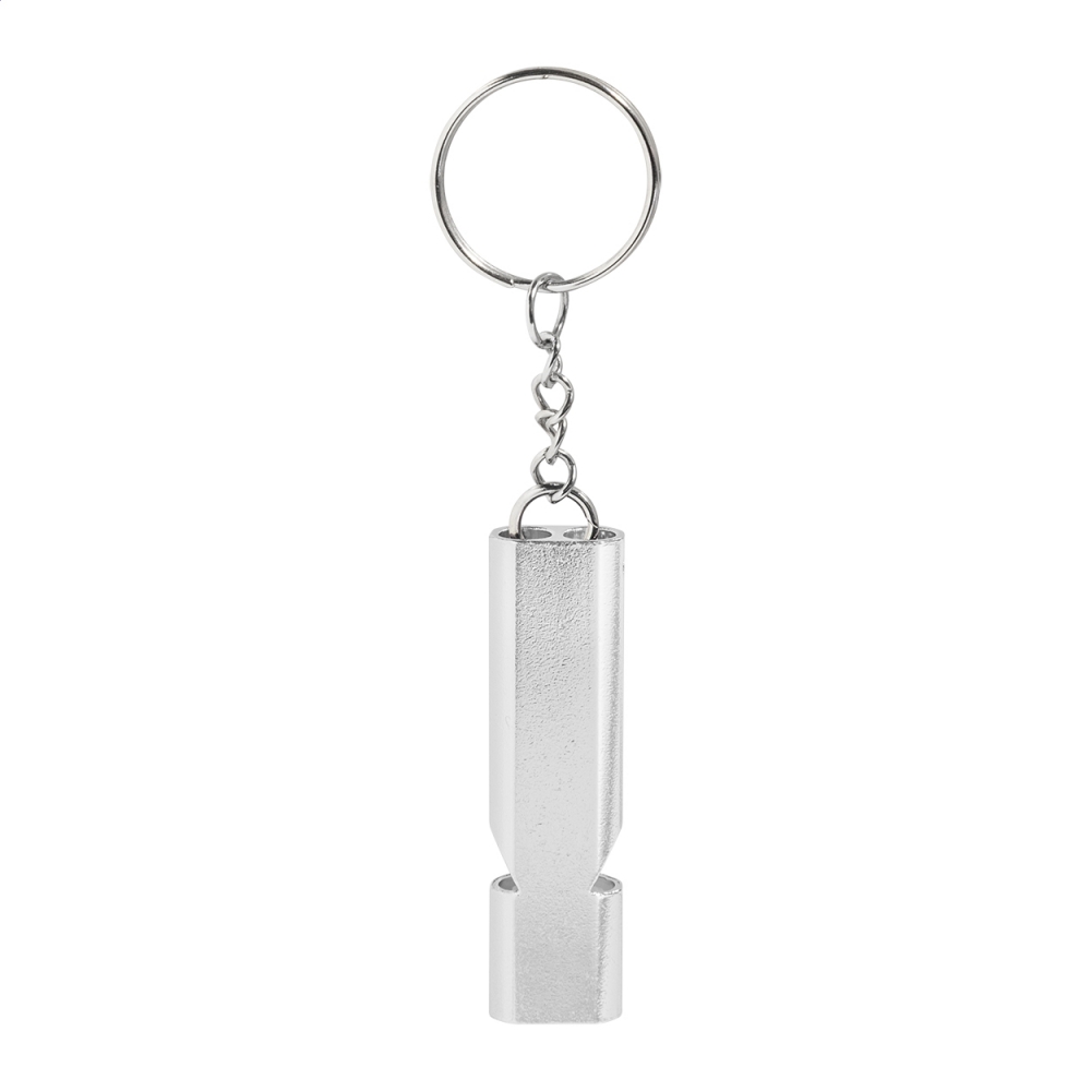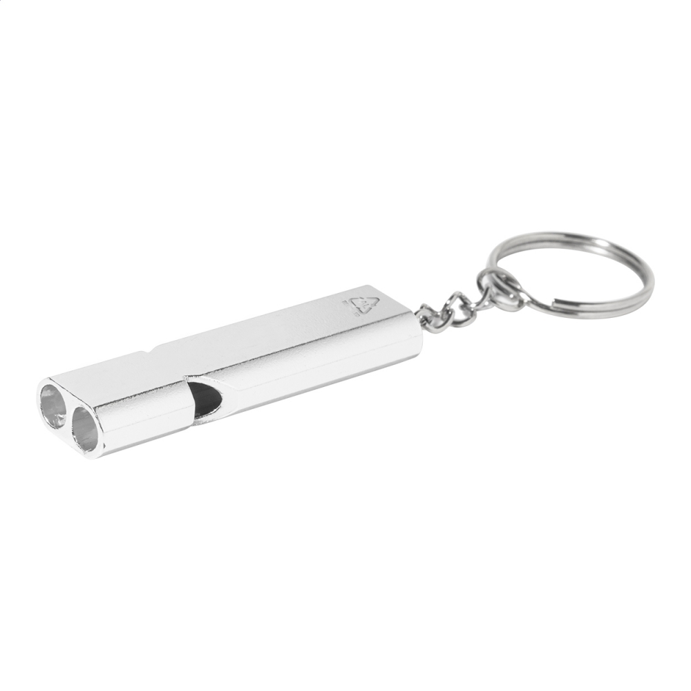 Artikel-Nr: AND800266-21Pfeife aus recyceltem Aluminium mit Schlüsselring aus Metall.