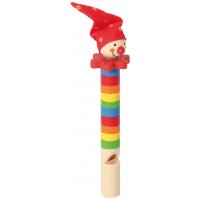 Durch Bewegen des Stäbchens lässt sich die Tonhöhe verändern. Mit Holzkopf und Stoffmütze. Verschiedene Designs sortiert. Achtung! Nicht geeignet für Kinder unter 36 Monaten.