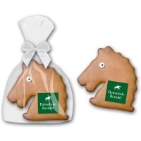 Aus feinstem Honiglebkuchen und mit farbig bedrucktem Marzipan - Fondantlogo versehen. Gewicht: ca. 92g Verpackung: Einzeln im Glanzbeutel mit roter oder weißer Satinschleife aufgebunden. Haltbarkeit: 3 Monate