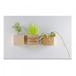 Artikel-Nr: HOP12.30034.0B-somOb am Kühlschrank, der Pinnwand oder an einer anderen Stelle, dieser Würfel aus europäischem Holz hat "anziehende" Werbewirkung. Der Blumentopf wird mit beliebigem Samen und einer Substrattablette als Erde geliefert. Ein gutes Stück aus der Natur für den Kunden. Ihre Werbung findet auf der umliegenden Banderole Platz und eine Lasergravur auf dem Holzgefäß ist optional möglich.