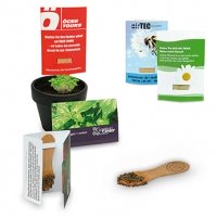 Artikel-Nr: 4011110120Am Holz-Stick, der in die Karte eingeschoben ist, sind Samen (S. 5) mit Wachs angebracht. Einfach den Stick aus der Lasche ziehen, in die Erde stecken und gießen. Damit die Werbebotschaft dann bei der Zielgruppe stets präsent ist, wird die Karte umgedreht und auf den Stick gesteckt. So kann die Karte als Namensschild oder Werbeplakat verwendet werden. Größe: 5,5 x 8 cm, Holz-Stick ca. 7 x 1,5 cm