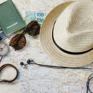 Pflanzlicher Strohhut mit farbigem Band