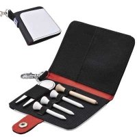 Artikel-Nr: W39810018600Dieser praktische Beutel bietet Ihnen eine Vielzahl an Golfaccessoires. Eine Pitchgabel mit Marker, 3 hölzerne Golftees und einen Bleistift in 'Golftee-Form'. In der rechten Tasche können Sie Ihre Wertungsliste aufbewahren. Maße ca. 12 x 9,7 x 2,5 cm Farbe: schwarz