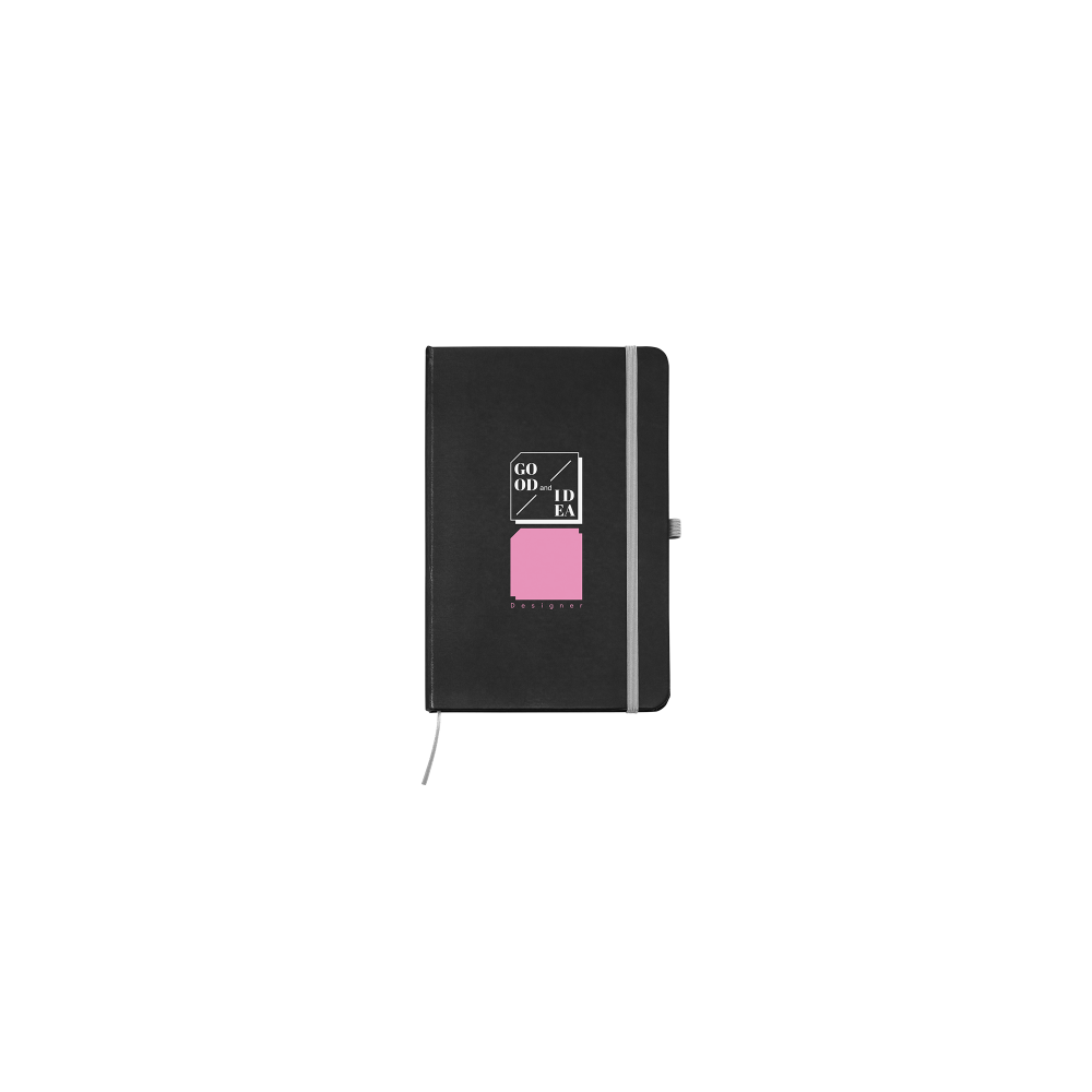 Artikel-Nr: PRM850533_10A5-Hardcover-Notizbuch aus schwarzem PU. Farbiges Lesezeichen, Gummiband und Stifthalter. 80 linierte Blätter.