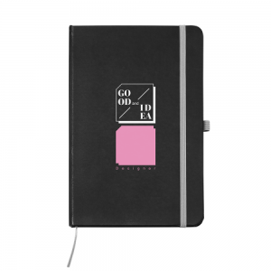Artikel-Nr: PRM850533_10A5-Hardcover-Notizbuch aus schwarzem PU. Farbiges Lesezeichen, Gummiband und Stifthalter. 80 linierte Blätter.