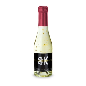 Artikel-Nr: ROP2K1918f0,2 l - Aromatisiertes, weinhaltiges Getränk mit 22-karätigem, lebensmittelechtem Blattgold und Kohlensäure in klarer 0,2 l Secco Flasche mit Schraubverschluss, Alkohol 10% Vol. - Kapselfarbe Bordeauxrot - Sektsteuerfrei