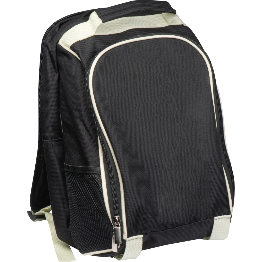 Artikel-Nr: EAG660503Picknickrucksack mit Kühlfach, Innenfach mit Edelstahlisolierkanne (Fassungsvolumen 1.000ml), zwei Edelstahltassen 200ml, Salz- und Pfefferstreuer, Brotzeitbrett, Besteck und Servietten. Ihre Werbung drucken wir auf das Vorderfach. Die Decke im Beispielfoto wird nicht mitgeliefert.