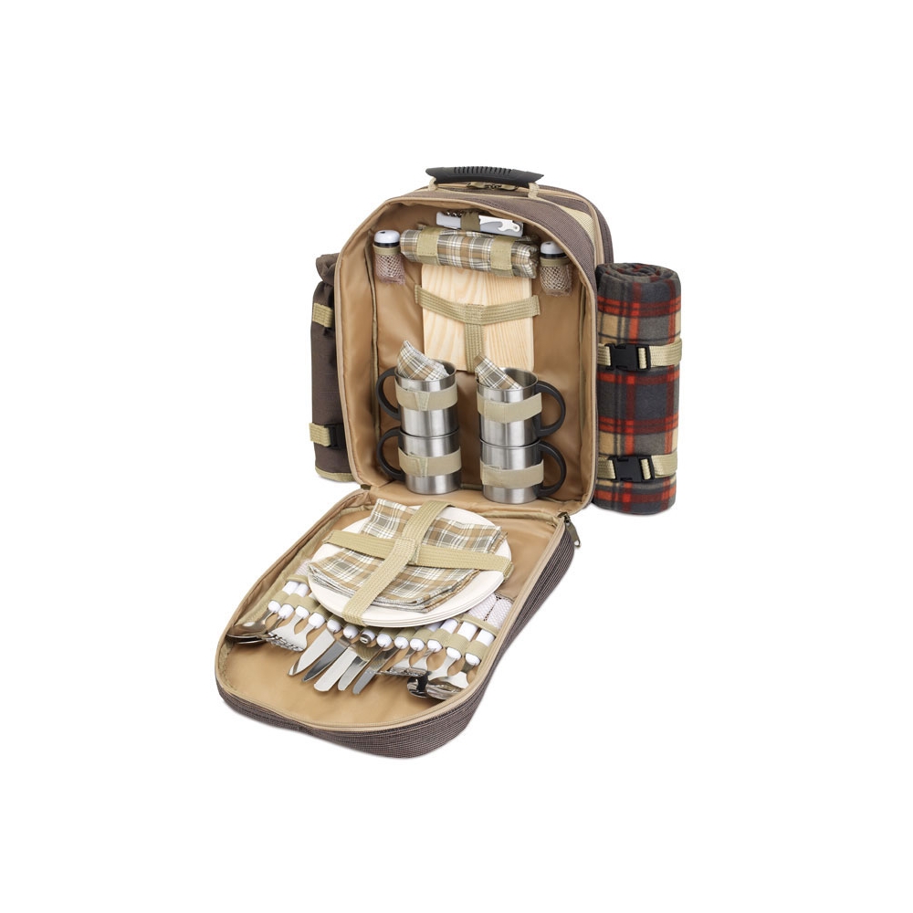 Artikel-Nr: OCBAR1470-01Hochwertiger Picknick Rucksack für 4 Personen. Inklusive Decke, Flaschenfach und edlem Tischzubehör. 600D Polyester.