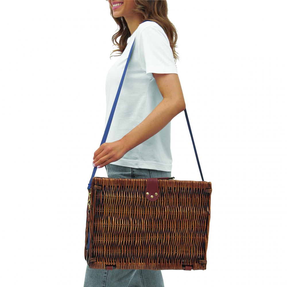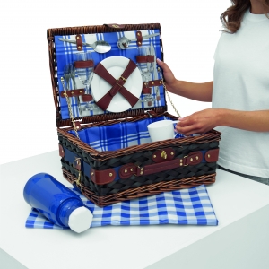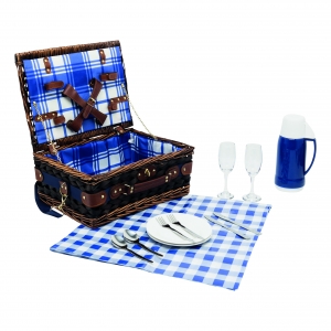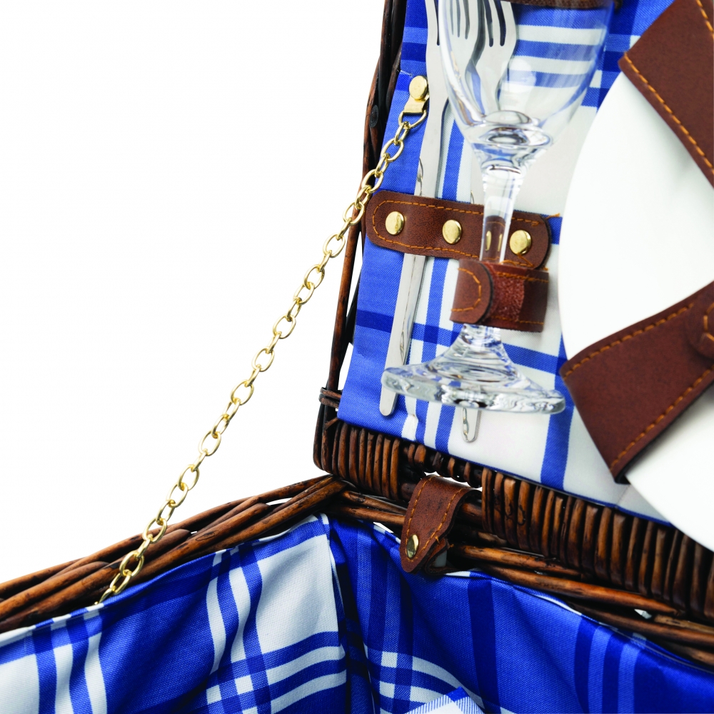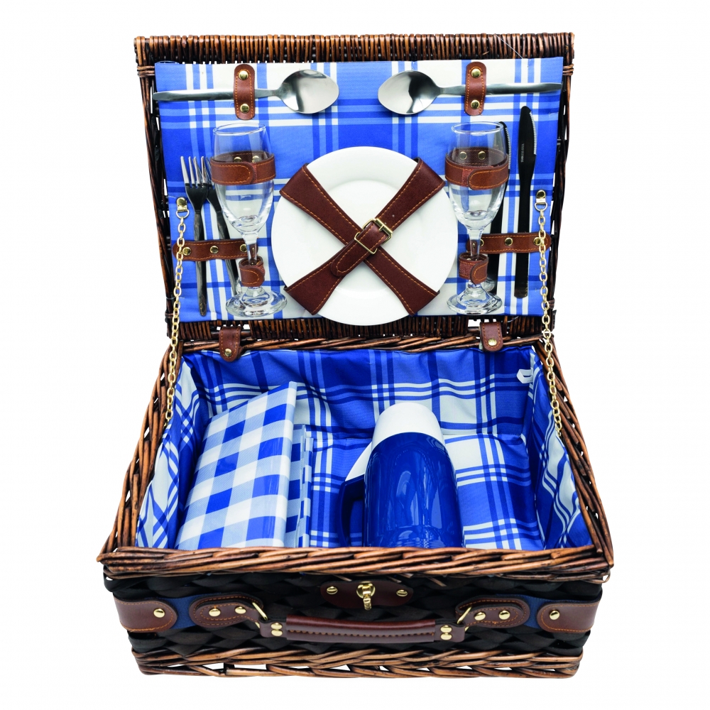 Artikel-Nr: INP56-0604007Picknickkorb CENTRAL PARK für 2 Personen: inkl. Edelstahl-Besteck, Porzellanteller, Sektgläser aus Glas, Isolierkanne mit Becher, Tischdecke, mit Schultergurt, Tragegriff und Drehverschluss