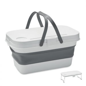 Artikel-Nr: OCBMO2227-06Faltbarer Picknickkorb aus Silikon mit Deckel aus PP. Der Deckel dient als Ablagefläche. Ohne Zubehör. Füllmenge: 16 l.