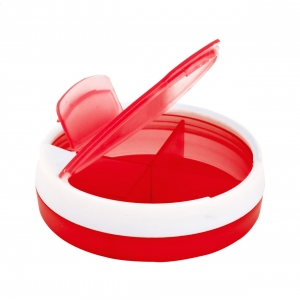 Artikel-Nr: AND731910-05Runde Tablettendose mit 4 Fächern aus Kunststoff.