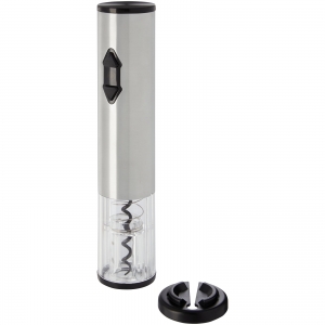 Artikel-Nr: CPO11321381Elektrischer Korkenzieher in Kombination mit einem Kapselschneider, einem Ausgießer und einem Stopfen. Funktioniert mit 4 AA-Batterien (nicht im Lieferumfang enthalten).