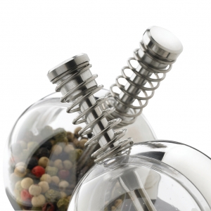 Artikel-Nr: XND262340Dieses stylische Salz & Pfeffer Set hat einen einzigartigen Druckmechanismus in jeder Mühle und sie sind somit leicht einhändig zu bedienen. Durch das durchsichtige Design der Behälter sehen Sie jederzeit, wieviel Salz & Pfeffer noch vorhanden ist. Geschütztes Design®