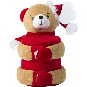 Artikel-Nr: GIV2532009207Plüsch-Elch / Teddy 'Rudi' mit Fleecedecke (LxB ca. 102 x 77 cm) und Label aus Papier für die Werbeanbringung am Elch / Teddy.