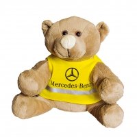 EN 71, kurzes, flauschiges Material in braun, hochwertige Füllung, waschbar, mit CE Kennzeichnung, Augen 2-farbig, ca. 22 cm hoch, gelbe Warnweste, 50 Stück im Karton