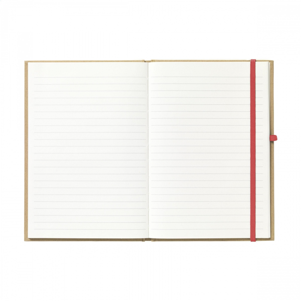 Artikel-Nr: CLP260756-008Notizbuch im A5-Format aus recyceltem Material. Mit ca. 80 Blatt/160 Seiten cremefarbenem, liniertem FSC Mix zertifiziertes Papier (70 g/m²), praktischem Stiftfach und elastischem Verschluss.