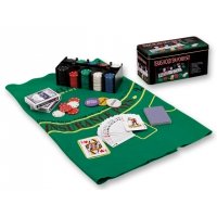 Artikel-Nr: 11201142Pokerset in Box. Set enthält: Tuch, Delaer-Chip, Big-Blind-Chip, Small-Blind-Chip, 200 Chips und zwei Kartenstapel. Material: Kunststoff, Papier, Textil und Metall.
