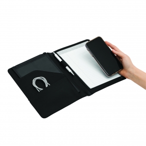 Artikel-Nr: INP56-1103251Portfolio HILL DALE im DIN-A5-Format: innen diverse Einsteckfächer, inkl. Schreibblock (liniert), Schlaufe für 1 Schreibgerät – außen in gestanzter Loch-Optik mit Metallplättchen für Ihre Werbeanbringung