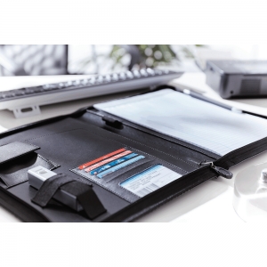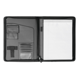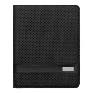 Artikel-Nr: INP56-1103249Portfolio HILL DALE ZIP im DIN-A4-Format: umlaufender Reißverschluss, innen diverse Einsteckfächer, 1 Klarsichtfach, Druckknopfverschluss-Innenfach,1 elastisches Band für Powerbank etc., inkl. Schreibblock (liniert), Schlaufe für 1 Schreibgerät – außen in gestanzter Loch-Optik mit Metallplättchen für Ihre Werbeanbringung