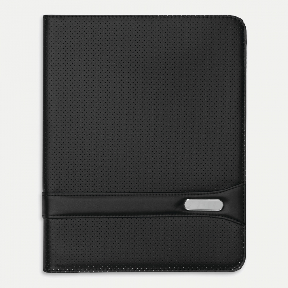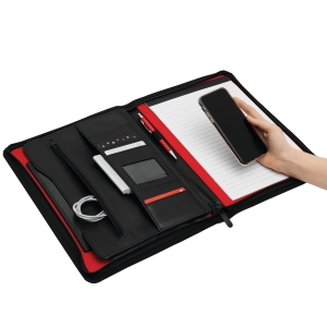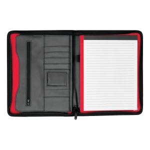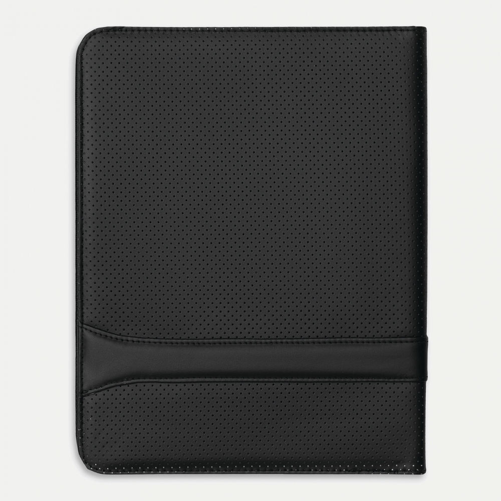 Artikel-Nr: INP56-1103230Portfolio MANHATTAN im DIN-A4-Format: umlaufender Reißverschluss, innen diverse Einsteckfächer, 1 Klarsichtfach, Reißverschluss-Innenfach, inkl. Schreibblock (liniert), Schlaufe für 1 Schreibgerät – außen mit gestanzter Loch-Optik mit Metallplättchen für Ihre Werbeanbringung