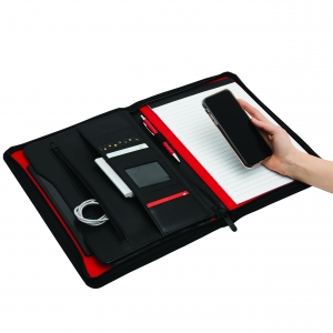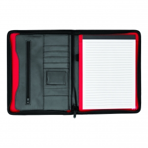 Artikel-Nr: INP56-1103230Portfolio MANHATTAN im DIN-A4-Format: umlaufender Reißverschluss, innen diverse Einsteckfächer, 1 Klarsichtfach, Reißverschluss-Innenfach, inkl. Schreibblock (liniert), Schlaufe für 1 Schreibgerät – außen mit gestanzter Loch-Optik mit Metallplättchen für Ihre Werbeanbringung