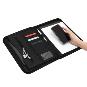 Artikel-Nr: INP56-0405725Portfolio SYMPOSIUM im DIN-A4-Format: umlaufender Reißverschluss, Schreibblock (blanko), diversen Einsteckfächern und Schlaufe für ein Schreibgerät