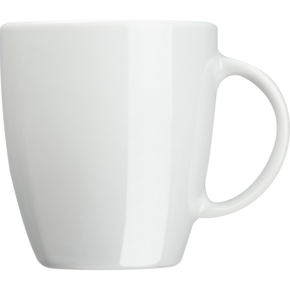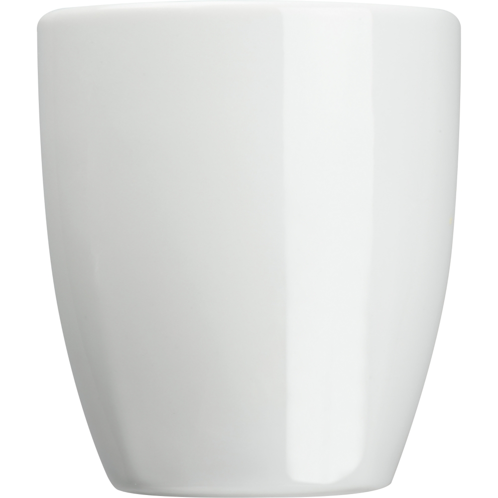 Artikel-Nr: EAG268906Tasse aus Porzellan mit einem Füllvermögen von 300 ml in einer ungewöhnlichen Form die sich von rund nach eckig wandelt. Ihre Werbung wird auf der Tasse im oberen Drittel angebracht.